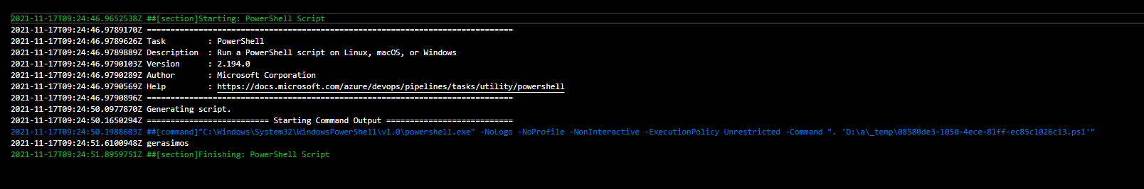 trigger: - dev pool: vmImage: windows-latest parameters: - name: powerenvironment displayName: Where to deploy? type: string steps: - task: PowerShell@2 inputs: targetType: 'inline' script: | $variable = '${{parameters.powerenvironment}}' $variable | Out-File $(Build.ArtifactStagingDirectory)\projectname.txt Get-Content $(Build.ArtifactStagingDirectory)\projectname.txt - task: PublishBuildArtifacts@1 inputs: PathtoPublish: '$(Build.ArtifactStagingDirectory)' ArtifactName: 'drop' publishLocation: 'Container'