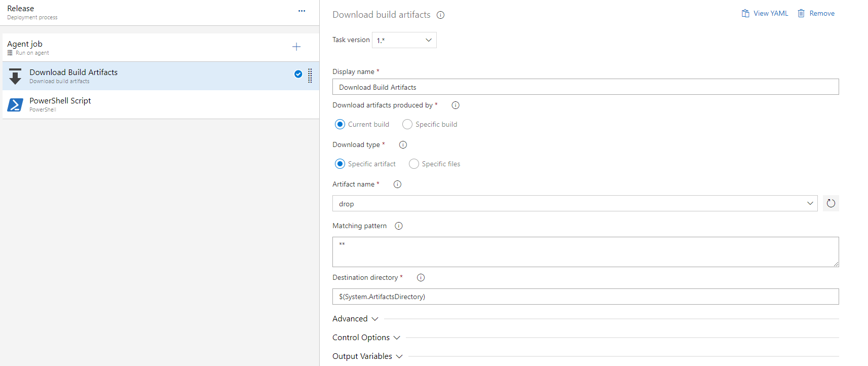 My release pipeline will download the build artifacts and get the value of the file. The release pipeline includes two steps.