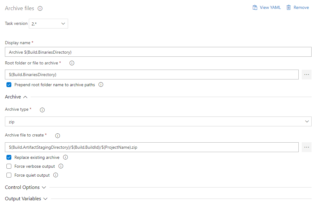 Lastly create a dump archive step to reference the input parameter from the build pipeline.