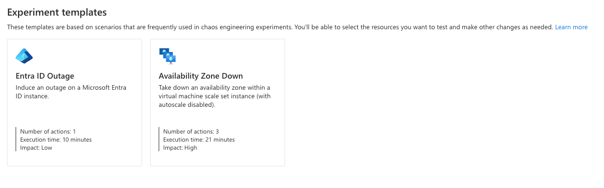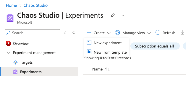 We will now navigate in azure chaos studio and press the create new experiment from template