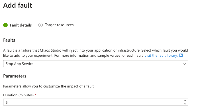 And as a next step go to the experiment designer to configure the experiment. The most important thing we should configure is the fault action.